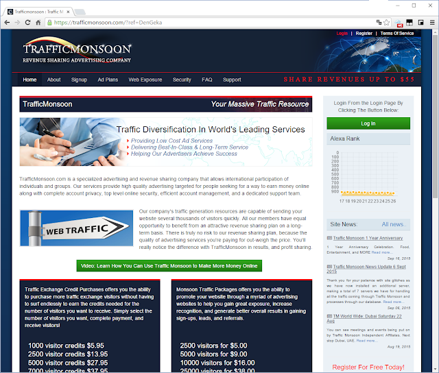- компании TrafficMonsoon 3 года, сайт работает уже больше года, посетителей более 874 миллионов;