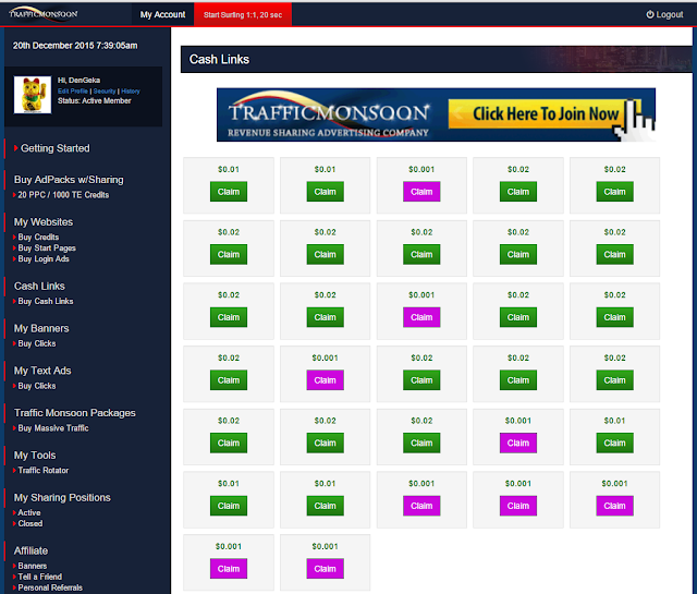 TrafficMonsoon - чемпион среди платящих зарубежных проектов по реферальной системе. Фишка проекта в 100% реферальных отчислениях за клики рефералов. Иными словами, заработал приглашенный вами реферал 10 долларов - вы тоже получаете 10 долларов на свой счет в аккаунте. Пригласили 10 человек, которые заработали по 10 долларов каждый - получили 100 долларов. Арифметика очень простая и понятная. Заработать на сайте может каждый, независимо от опыта работы, стажа, способностей и других качеств, так необходимых в обычной жизни. Для регистрации достаточно кликнуть по баннеру ниже и перейти на сайт Trafficmonsoon.